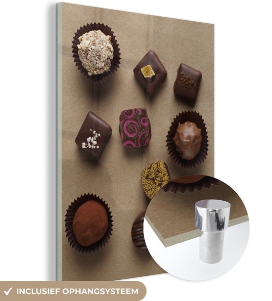 MuchoWow® Peinture sur verre 60x80 cm - Peinture sur verre acrylique - Chocolats sur fond marron - Photo sur verre - Peintures
