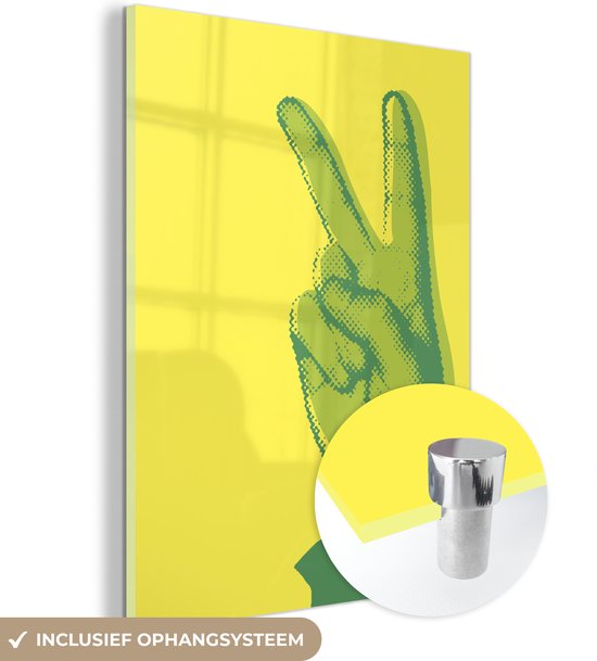 MuchoWow® Peinture sur verre 60x80 cm - Peinture sur verre acrylique - Deux doigts vers le haut - Photo sur verre - Peintures