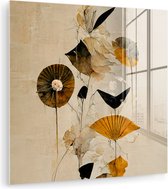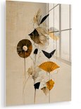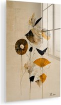 MuchoWow® Peinture sur verre 60x80 cm - Peinture sur verre acrylique - Fleurs - Vintage - Plantes - Or - Photo sur verre - Peintures