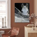 Peinture sur verre - Paarden - Animaux - Zwart - Wit - Salon - Chambre