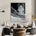 MuchoWow® Peinture sur verre 60x80 cm - Peinture sur verre acrylique - Paarden - Animaux - Zwart - Wit - Photo sur verre - Décoration murale salon - Décoration murale chambre - Peintures