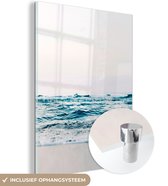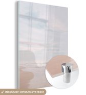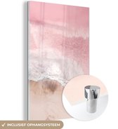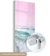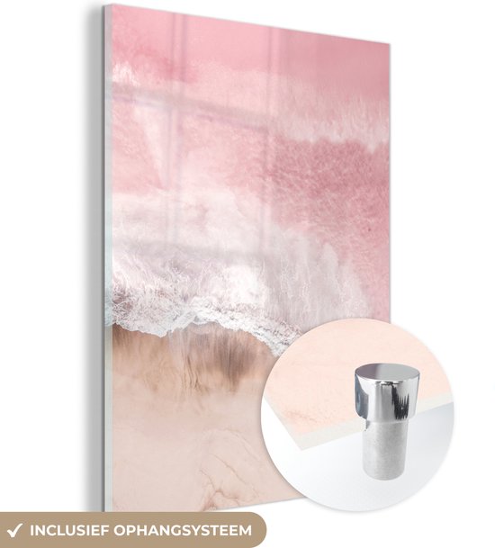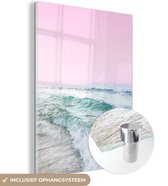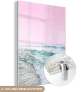 MuchoWow® Peinture sur verre 60x80 cm - Peinture sur verre - Plage - Mer - Rose - Nature - Vagues - Photo sur verre acrylique - Peintures