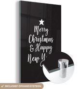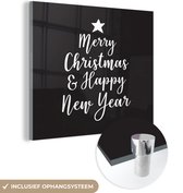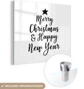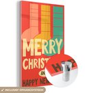 MuchoWow® Peinture sur verre 60x90 cm - Peinture sur verre acrylique - Chaussettes de Noël - Illustration - Noël - Citations - Dictons - Joyeux New et Happy année - Rouge - Photo sur verre - Peintures