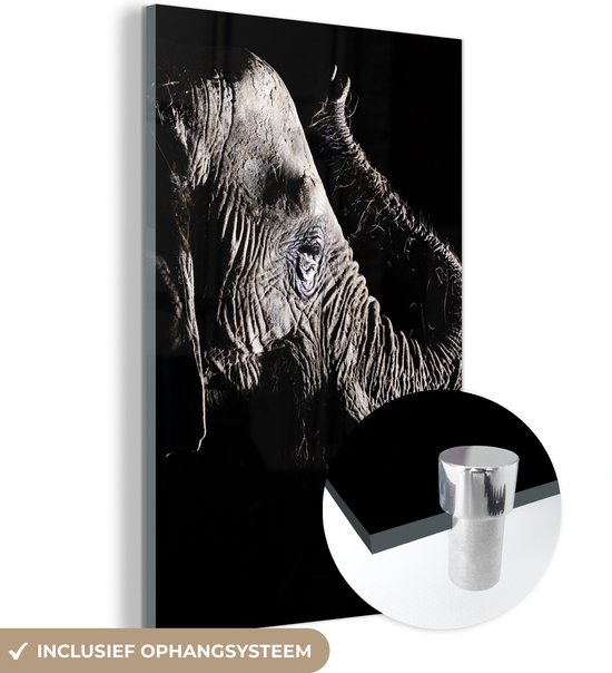 MuchoWow® Peinture sur verre 60x90 cm - Peinture sur verre acrylique - Éléphant - Zwart - Animaux - Nature - Photo sur verre - Peintures