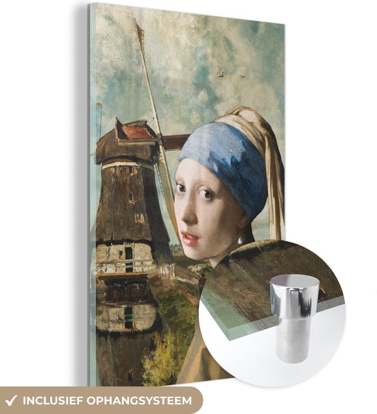 MuchoWow® Peinture sur verre 60x90 cm - Peinture sur verre acrylique - Fille à la boucle d'oreille en perle - Johannes Vermeer - Moulin - Photo sur verre - Peintures