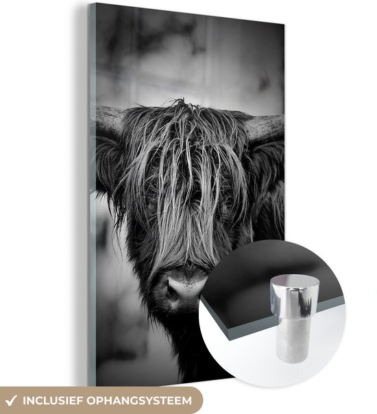 MuchoWow® Peinture sur verre 60x90 cm - Peinture sur verre acrylique - Highlander écossais - Lumière - Portrait - Nature - Photo sur verre - Peintures