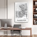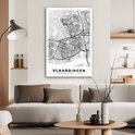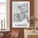 Une représentation du plan de la ville de Vlaardingen en nuances de gris. La carte montre la ville d'en haut avec des lignes noires.Spécifications produit