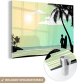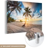 MuchoWow® Peinture sur Verre - Coucher de Soleil - Plage - Palmier - 90x60 cm - Peintures sur Verre Acrylique - Photo sur Glas