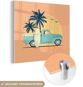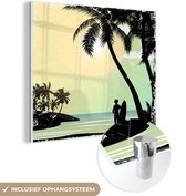 MuchoWow® Peinture sur verre - Plage - Soleil - Palmier - Surf - 90x90 cm - Peintures sur verre acrylique - Photo sur Glas