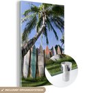MuchoWow® Peinture sur verre 60x90 cm - Peinture sur verre acrylique - Un palmier près d'une rangée de planches de surf - Photo sur verre - Peintures