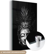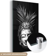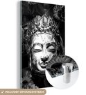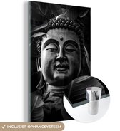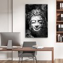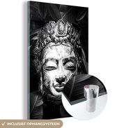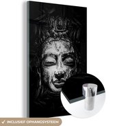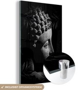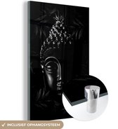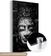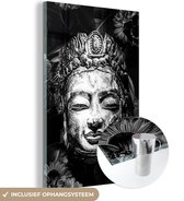 MuchoWow® Peinture sur verre 80x120 cm - Peinture sur verre acrylique - Tête brute de Bouddha avec fleurs et feuilles - noir et blanc - Photo sur verre - Peintures
