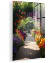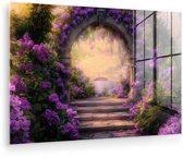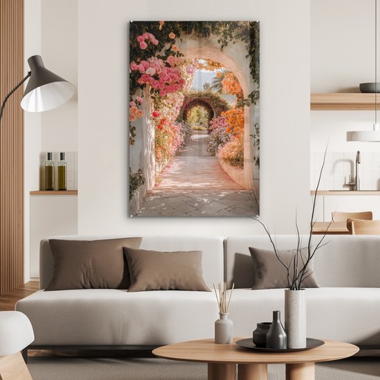 MuchoWow® Peinture sur verre 80x120 cm - Peinture sur verre acrylique - Vue à travers - Arche - Fleurs - Pastel - Photo sur verre - Décoration murale salon - Décoration murale chambre - Peintures