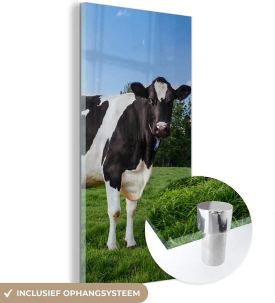 MuchoWow® Peinture sur verre 80x160 cm - Peinture sur verre acrylique - Vache - Zwart - Wit - Nederland - Photo sur verre - Peintures