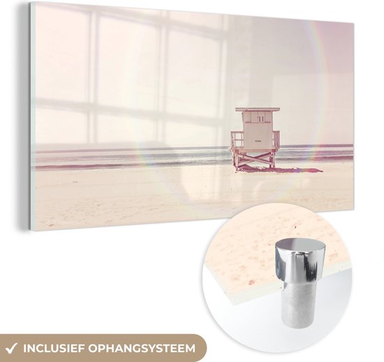 MuchoWow® Peinture sur verre 80x60 cm - Peinture sur verre - Plage - Cabane - Soleil - Mer - Été - Photo sur verre acrylique - Peintures