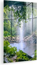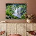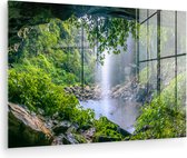 Tableau sur verre - Jungle - Forêt tropicale - Water - Cascade - Plantes - Salon - Chambre