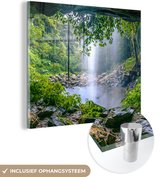 MuchoWow® Peinture sur verre 80x60 cm - Peinture sur verre acrylique - Jungle - Forêt tropicale - Water - Cascade - Plantes - Photo sur verre - Peintures