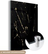 MuchoWow® Peinture sur verre 80x60 cm - Peinture sur verre acrylique - Marbre - Zwart - Luxe - Photo sur verre - Peintures