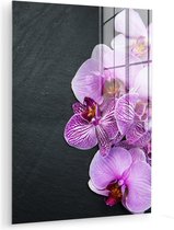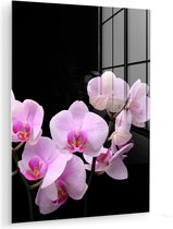 MuchoWow® Peinture sur verre 80x60 cm - Peinture sur verre acrylique - Orchidée - Fleurs - Rose - Nature morte - Flora - Photo sur verre - Peintures