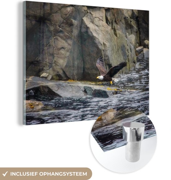 MuchoWow® Peinture sur verre 80x60 cm - Peinture sur verre acrylique - Pygargue à queue blanche près des rochers du Cap Breton - Photo sur verre - Peintures