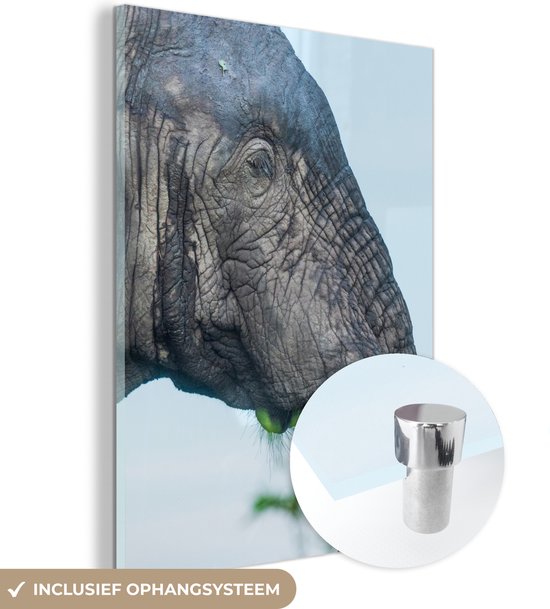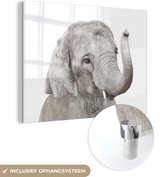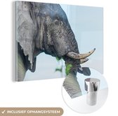 MuchoWow® Peinture sur verre 90x120 cm - Peinture sur verre acrylique - Éléphant - Animaux - Grijs - Nature - Photo sur verre - Peintures