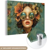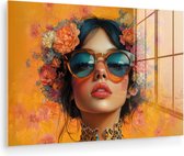 MuchoWow® Peinture sur verre 90x120 cm - Peinture sur verre acrylique - Femme - Imprimé Panthère - Jungle - Nature - Luxe - Photo sur verre - Décoration murale salon - Décoration murale chambre - Peintures