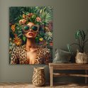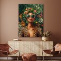 Peinture sur verre - Femme - Imprimé léopard - Jungle - Nature - Luxe - Salon - Chambre