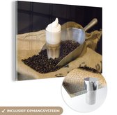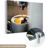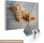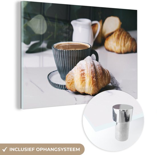 MuchoWow® Peinture sur verre 90x60 cm - Peinture sur verre acrylique - Croissant avec une tasse de café - Photo sur verre - Peintures
