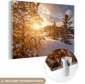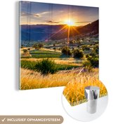 MuchoWow® Peinture sur verre 90x60 cm - Peinture sur verre acrylique - Lever de soleil brumeux dans les montagnes en été - Photo sur verre - Peintures