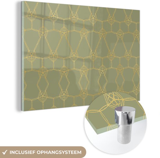 MuchoWow® Peinture sur verre 90x60 cm - Peinture sur verre acrylique - Motifs - Vert - Or - Ligne - Photo sur verre - Peintures