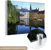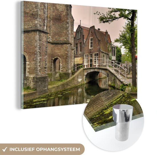 MuchoWow® Peinture sur verre 90x60 cm - Peinture sur verre acrylique - Pont - Water - Delft - Photo sur verre - Peintures