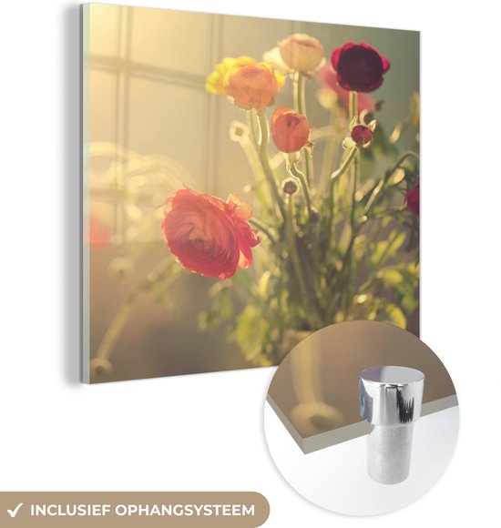 MuchoWow® Peinture sur verre 90x90 cm - Peinture sur verre acrylique - Bouquet de renoncules colorées - Photo sur verre - Peintures