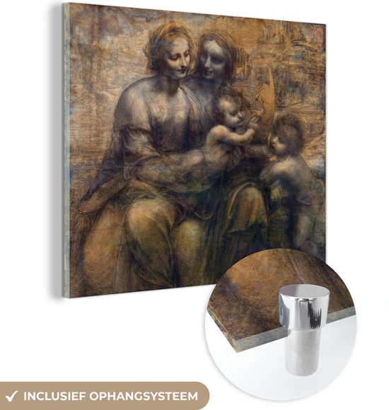 MuchoWow® Peinture sur verre 90x90 cm - Peinture sur verre acrylique - Marie avec l'enfant et sainte Anne - Leonardo de Vinci - Photo sur verre - Peintures