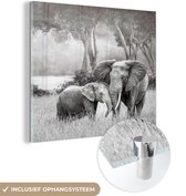 MuchoWow® Peinture sur verre 90x90 cm - Peinture sur verre - Éléphant - Animaux - Zwart - Nature - Photo sur verre acrylique - Peintures
