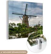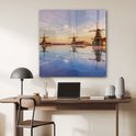 MuchoWow® Peinture sur verre 90x90 cm - Peinture sur verre - Moulins à vent en rangée - Photo sur verre acrylique - Peintures