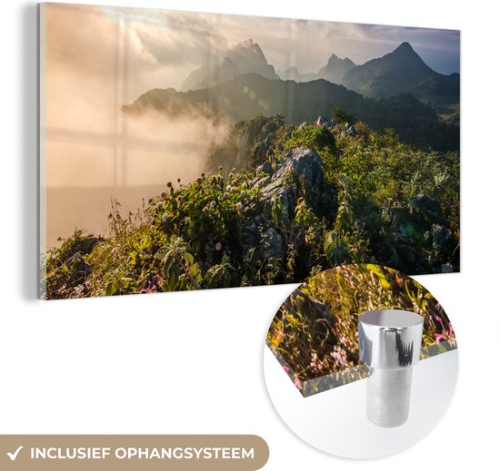 MuchoWow® Peinture sur verre - Berg dans la brume - 80x40 cm - Peintures sur verre acrylique - Photo sur Glas