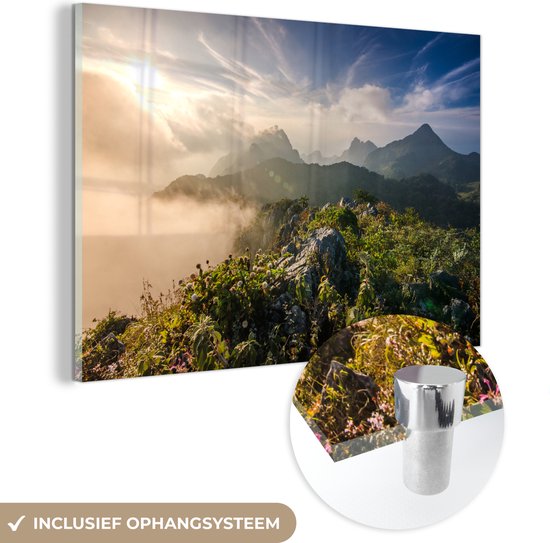 Peinture sur verre MuchoWow® - Berg dans la brume - 120x60 cm - Peintures sur verre acrylique - Photo sur Glas