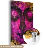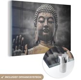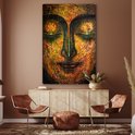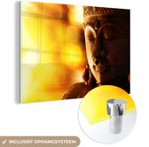 MuchoWow® Peinture sur Verre - Bouddha - Visage - Oranje - 100x150 cm - Peintures sur Verre Peintures - Photo sur Glas