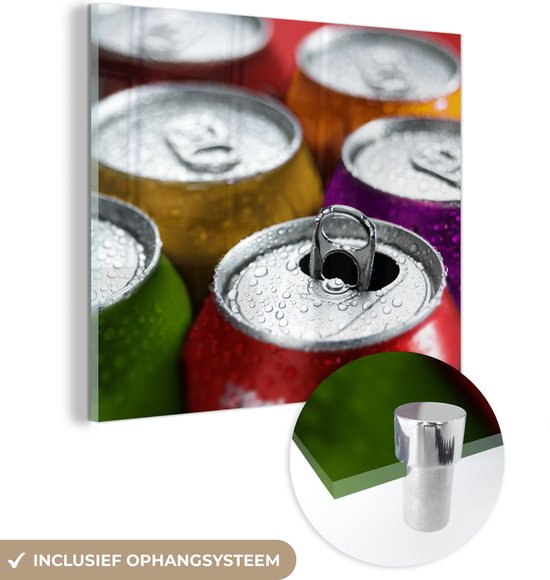 MuchoWow® Peinture sur verre - Canettes de boissons gazeuses - 90x90 cm - Peintures sur verre acrylique - Photo sur Glas