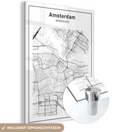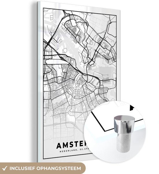MuchoWow® Peinture sur Verre - Carte - Amsterdam - Zwart - Wit - 80x120 cm - Peintures sur Verre Peintures - Photo sur Glas