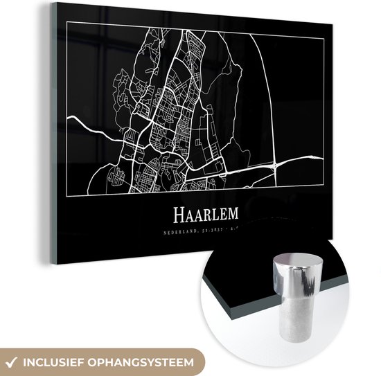 MuchoWow® Peinture sur verre - Carte - Haarlem - Plan de la ville - Carte - 90x60 cm - Peintures sur verre acrylique - Photo sur Glas