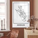 Tableau sur verre - Carte - Carte - Plan de la ville - Heerlen - Nederland -Bas - Zwart et Wit - Salon - Chambre