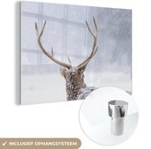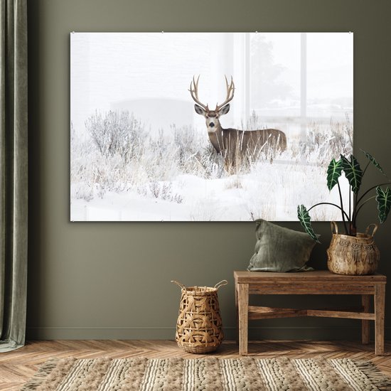 MuchoWow® Peinture sur Verre - Cerf - Hiver - Neige - Animaux - Saisons - Wit - 150x100 cm - Peintures sur Verre Acrylique - Photo sur Glas