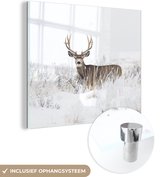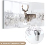 MuchoWow® Peinture sur Verre - Cerf - Hiver - Neige - Animaux - Saisons - Wit - 180x120 cm - Peintures sur Verre Acrylique - Photo sur Glas