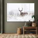 Tableau sur verre - Cerf - Hiver - Neige - Animaux - Saisons - Wit - Salon - Chambre