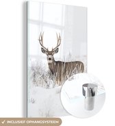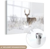 MuchoWow® Peinture sur Verre - Cerf - Hiver - Neige - Animaux - Saisons - Wit - 90x90 cm - Peintures sur Verre Acrylique - Photo sur Glas