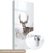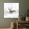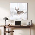Tableau sur verre - Cerf - Hiver - Neige - Animaux - Saisons - Wit - Salon - Chambre