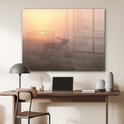 Tableau sur verre - Cerf - Soleil - Brouillard - Salon - Chambre
