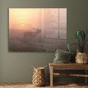 MuchoWow® Peinture sur verre - Cerf - Soleil - Brouillard - 120x90 cm - Peintures sur verre acrylique - Photo sur Glas