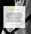 La peinture est en verre acrylique de haute qualité d'une épaisseur totale de 5 mm. De plus, il est doté d'un excellent niveau de finition et il est totalement résistant aux rayons UV, de sorte que les couleurs ne s'estompent pas et que vous puissiez profiter de la peinture sur verre pendant des années.