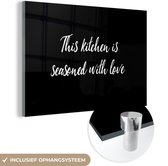 MuchoWow® Peinture sur verre - Dans cette cuisine, ils cuisinent avec amour - Cuisine - Dictons - Citations - Amour - 180x120 cm - Peintures sur verre acrylique - Photo sur Glas